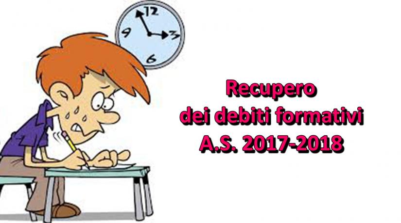 Nei giorni 27, 28 e 29 agosto 2018, si svolgeranno gli esami di recupero del debito formativo per gli alunni con "giudizio sospeso" A.S. 2017-2018. A seguire, le operazioni di scrutinio finale. Continua a leggere per consultare il calendario dettagliato delle attività. (NEWS AGGIORNATA il 27.08.18)