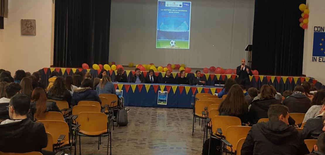 Venerdì 06 aprile 2018 alle ore 10:30, si è svolta una tavola rotonda dal titolo "La gestione della sicurezza negli stadi", presso l'Aula Magna dell'I.I.S.S. in Viale Don Bosco n. 48 a Galatina. L'appuntamento formativo, di grande interesse per gli studenti e gli addetti ai lavori, è stato organizzato dal nostro Istituto in collaborazione con l'Unione Sportiva Lecce s.p.a. e rientra nel Progetto "Steward per un giorno", che vedrà direttamente coinvolti gli alunni della scuola.