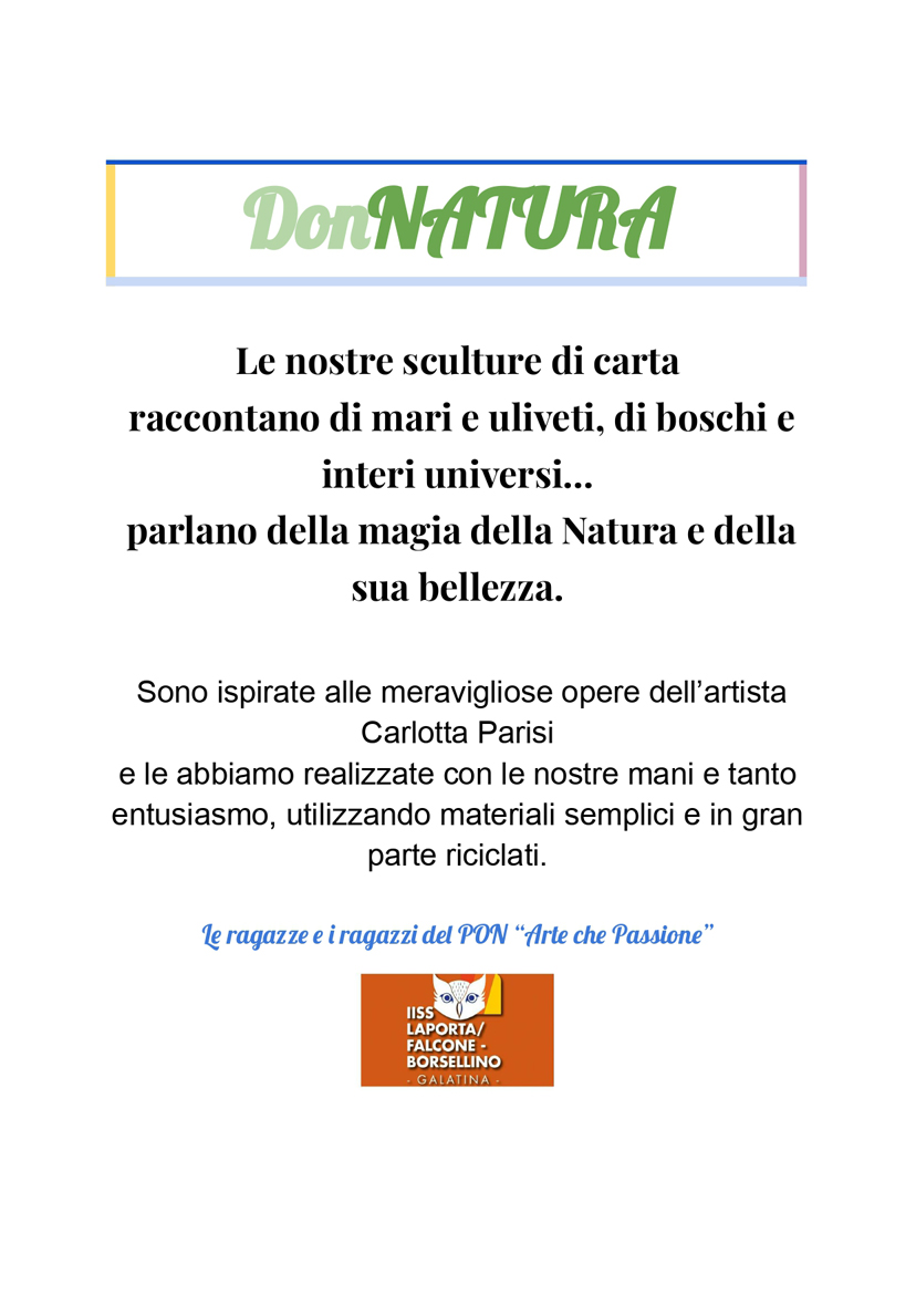 (tutor) della durata di 30 ore, è stato concepito come un Laboratorio creativo/artistico/artigianale per la produzione di elaborati in cartapesta, avvicinando così i giovanissimi a questo antico e duttile materiale. La cartapesta è un po’ il simbolo dell’artigianato leccese e il laboratorio ha fornito agli studenti la possibilità di replicare gestualità arcaiche in un contesto dinamico e moderno. Mettendo letteralmente le “mani in pasta” modellando la carta e cuocendo la colla, gli alunni hanno scoperto che questa tecnica decorativa è tuttora utilizzata nell’arte e nel design, ripercorrendone le fasi storiche e soffermandosi sui creativi contemporanei hanno amato tantissimo l’artista “Carlotta Parisi” e hanno realizzato delle grandi sculture ispirandosi alle sue poetiche donne e ai colori della natura. Hanno anche sperimentato il piacere del riciclo creativo e di conseguenza l’interesse per l’ecologia e il rispetto per l’ambiente circostante. E’ stato un percorso intenso e a volte faticoso, ma sempre interessante e a tratti ludico, che ha permesso a tutti di esprimere le proprie potenzialità in un ambiente sereno e accogliente, stimolando creatività e manualità, curiosità e fantasia. In fondo…il grande potere dell’arte è tutto qui!   VIDEO