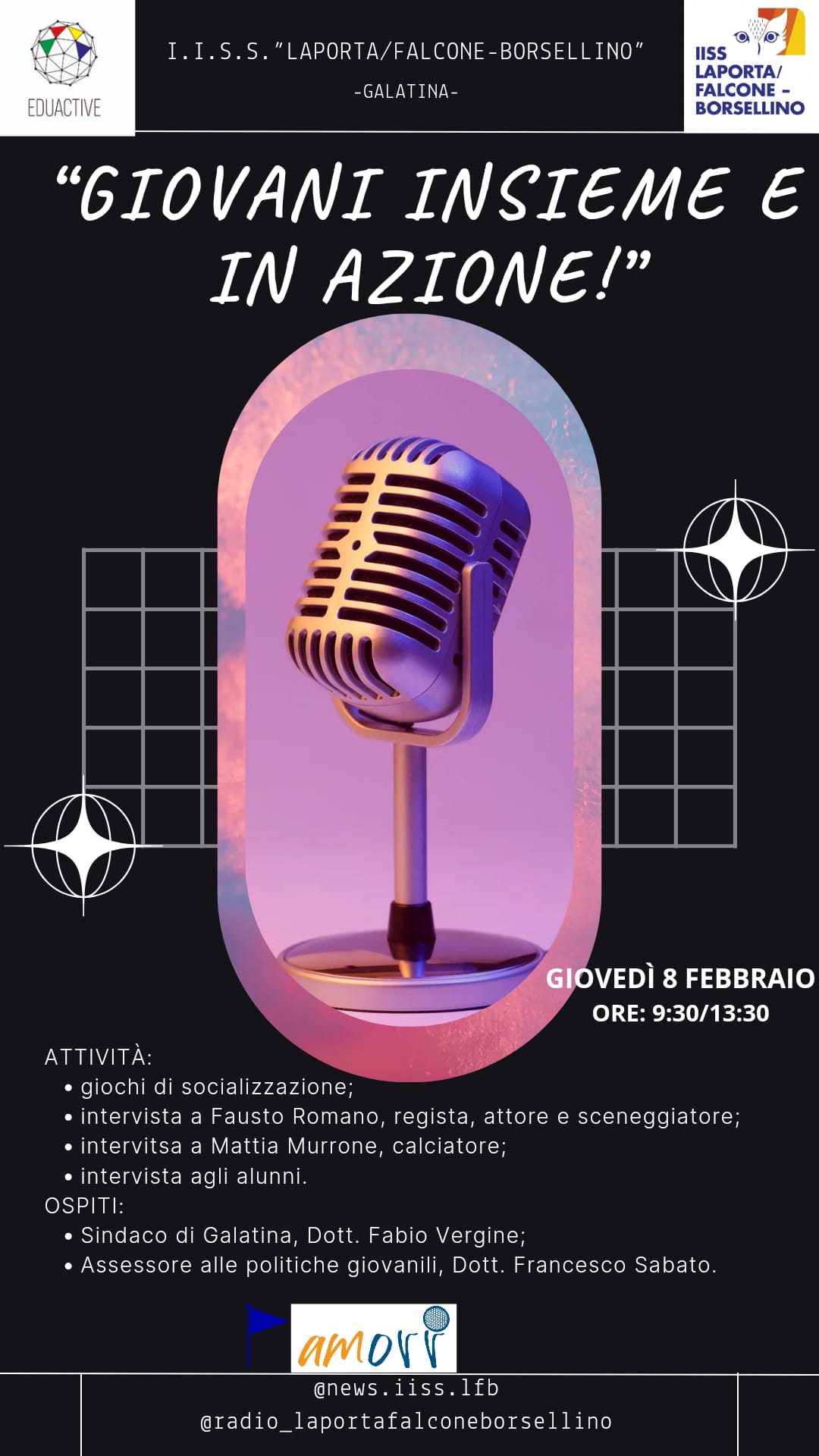 Si è tenuto giovedì 8 febbraio, presso l’IISS “Laporta/Falcone-Borsellino”, l’evento conclusivo del Progetto AMORR Alta Marea Onde Radio e Reti.