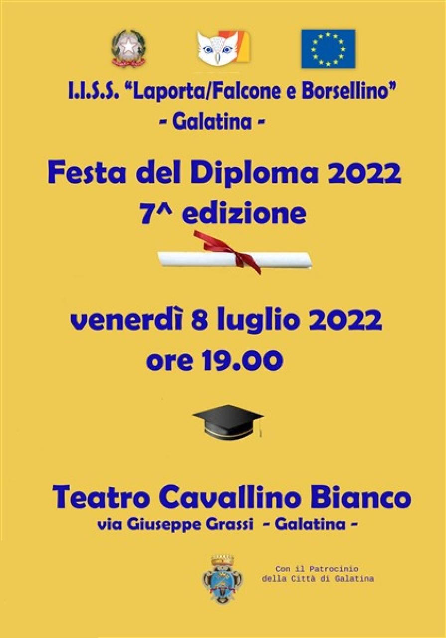 Dopo due edizioni on-line, torna finalmente in presenza la Festa del Diploma 2022: l'appuntamento è per venerdì 8 luglio alle ore 19:00, presso il Teatro Comunale "Cavallino Bianco" di Galatina.