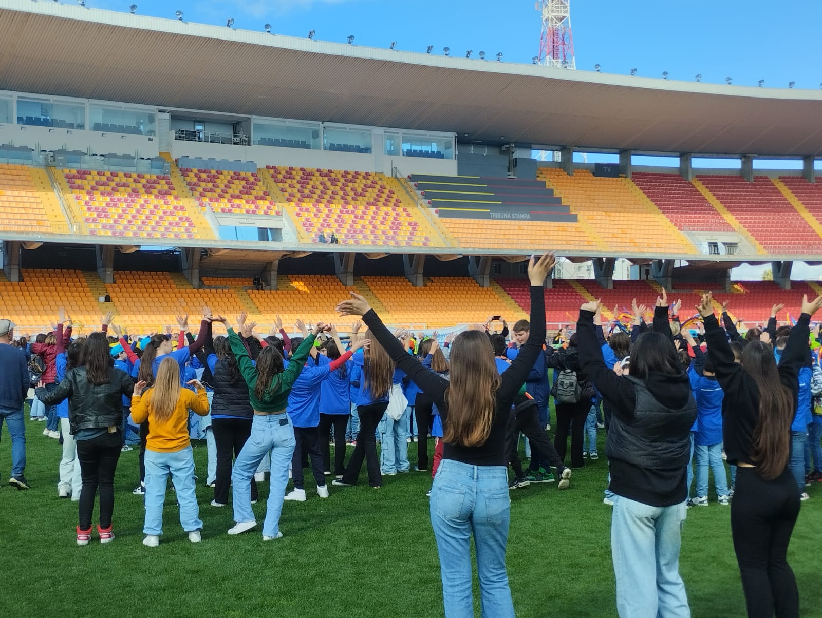 La manifestazione si è svolta presso lo stadio Via del Mare di Lecce dove, insieme a oltre 2.000 studenti provenienti da tutta la provincia, ci siamo esibiti in diverse coreografie, facendoci portavoce di un messaggio universale di solidarietà e riflettendo sull’importanza dell’inclusione sociale di tutti/e.