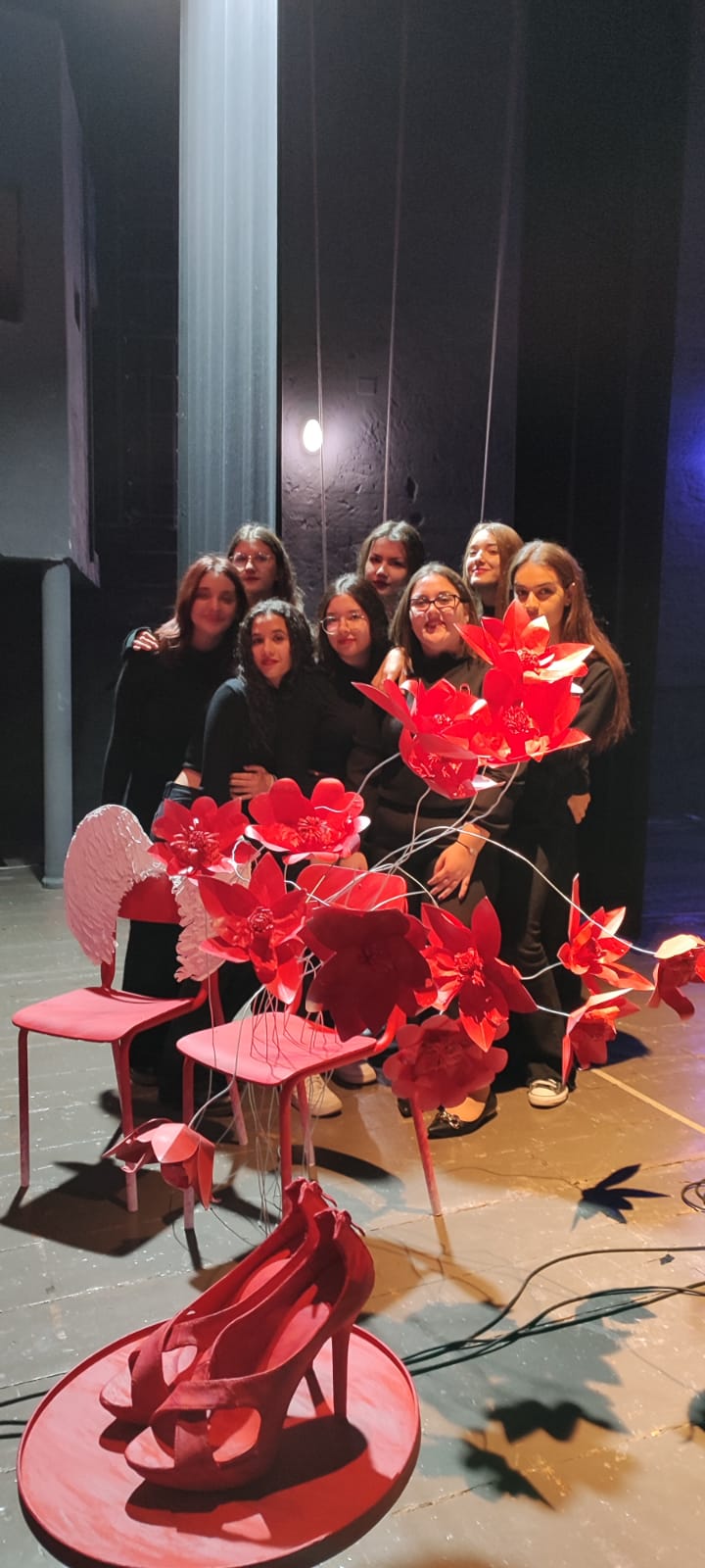 Al team, guidato dalla Prof.ssa Teresa Schiavone, si deve la realizzazione dell’allestimento che ha portato sullo splendido palco del Teatro “Cavallino Bianco” la sedia alata e i fiori rossi nel vento: gli elementi che caratterizzano la nostra scenografia sono chiari riferimenti alla triste simbologia di questa giornata.