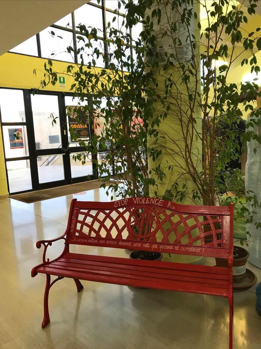 Il 25 novembre dell’I.I.S.S. “Laporta/Falcone-Borsellino” è cominciato con l’Assemblea di Istituto, che ha visto i ragazzi impegnati nella pitturazione in rosso di una panchina, poi collocata nell’atrio della sede centrale, e che testimonia il “nostro NO” alla violenza sulle donne.