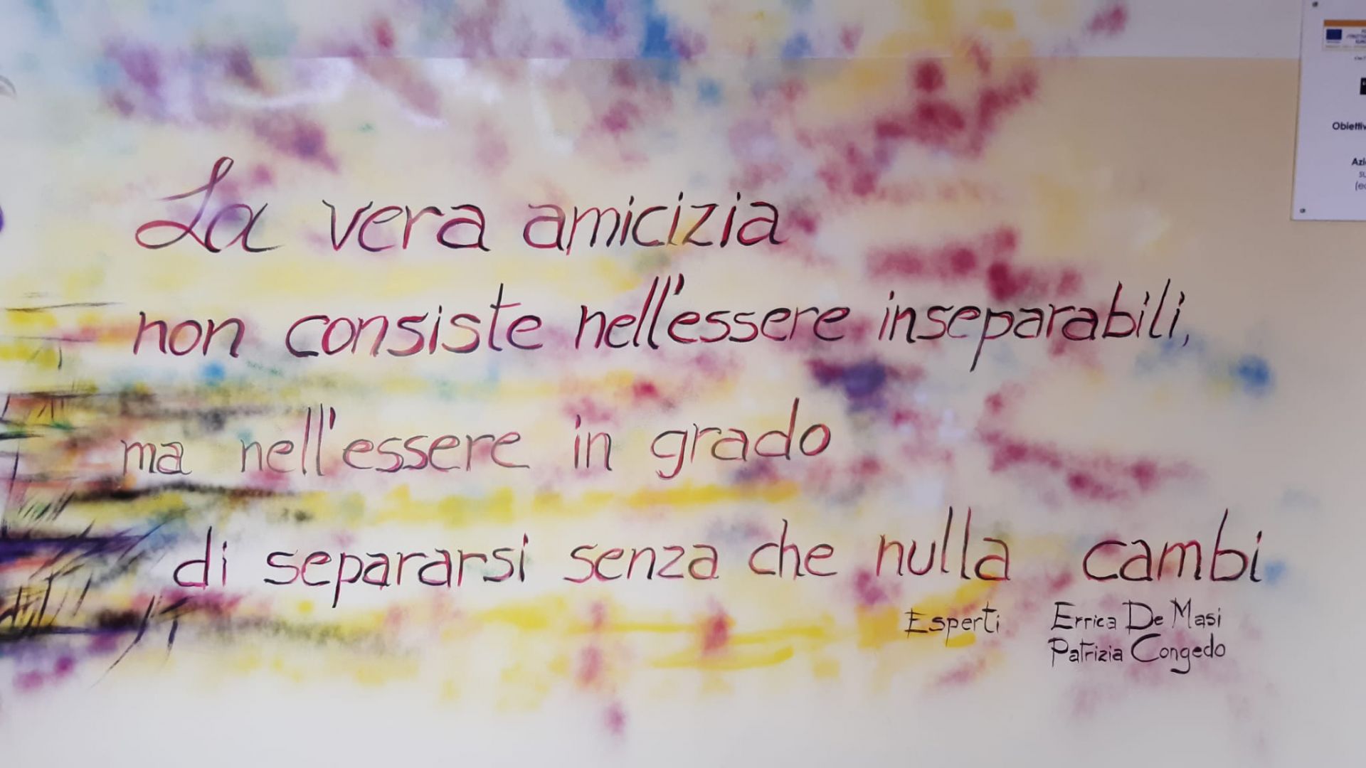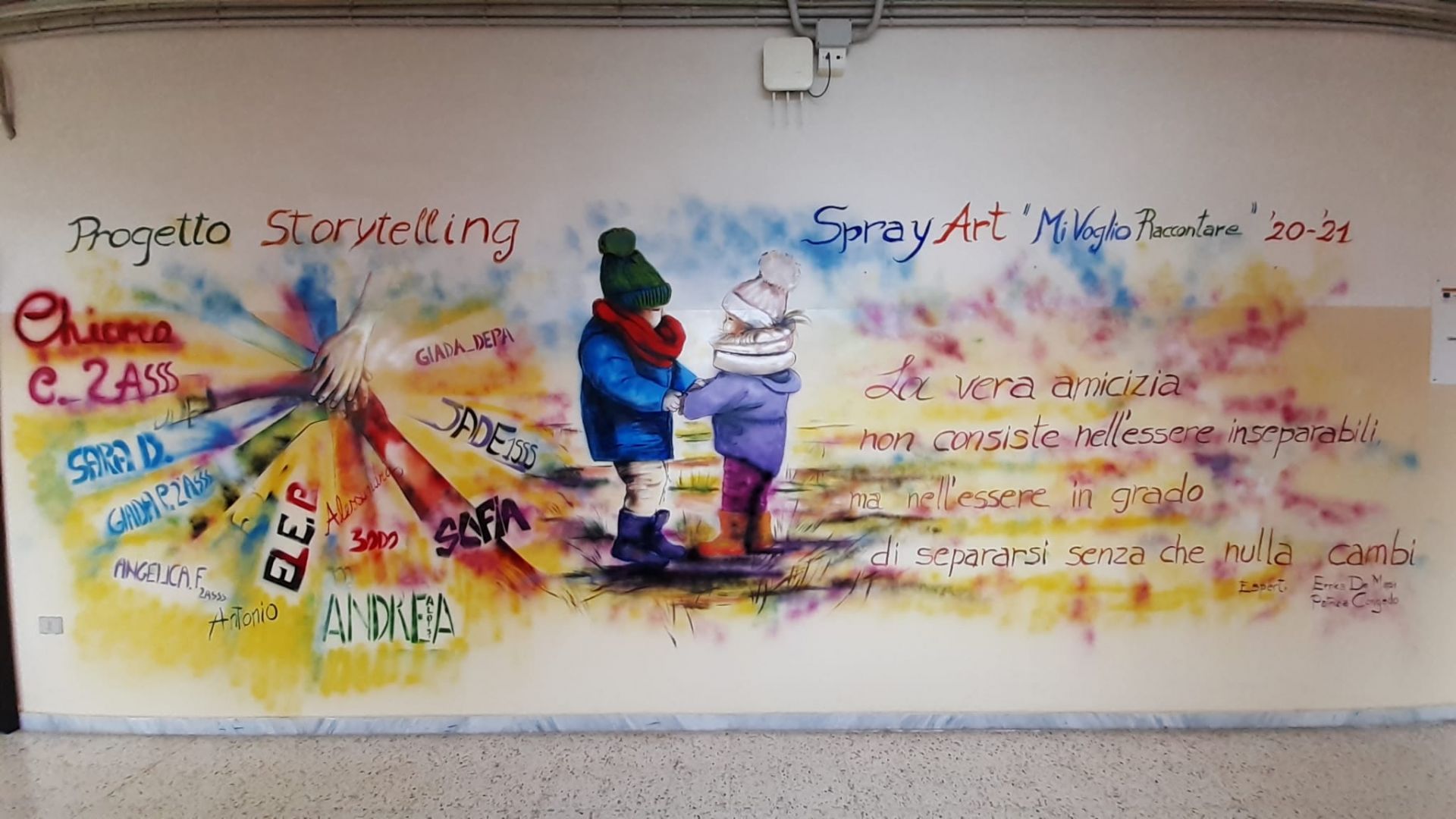Il percorso formativo seguito dagli studenti con attività di storytelling e spray-art si è concluso con la realizzazione di un bellissimo murales sul tema dell'amicizia, presso l'ala dei laboratori dell'Istituto Professionale.