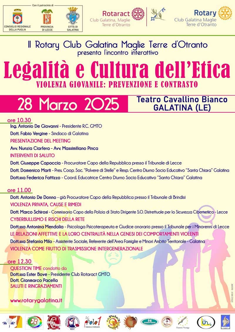 Il Rotary Club Galatina Maglie Terre d'Otranto ha organizzato l'incontro interattivo "Legalità e Cultura dell'Etica".