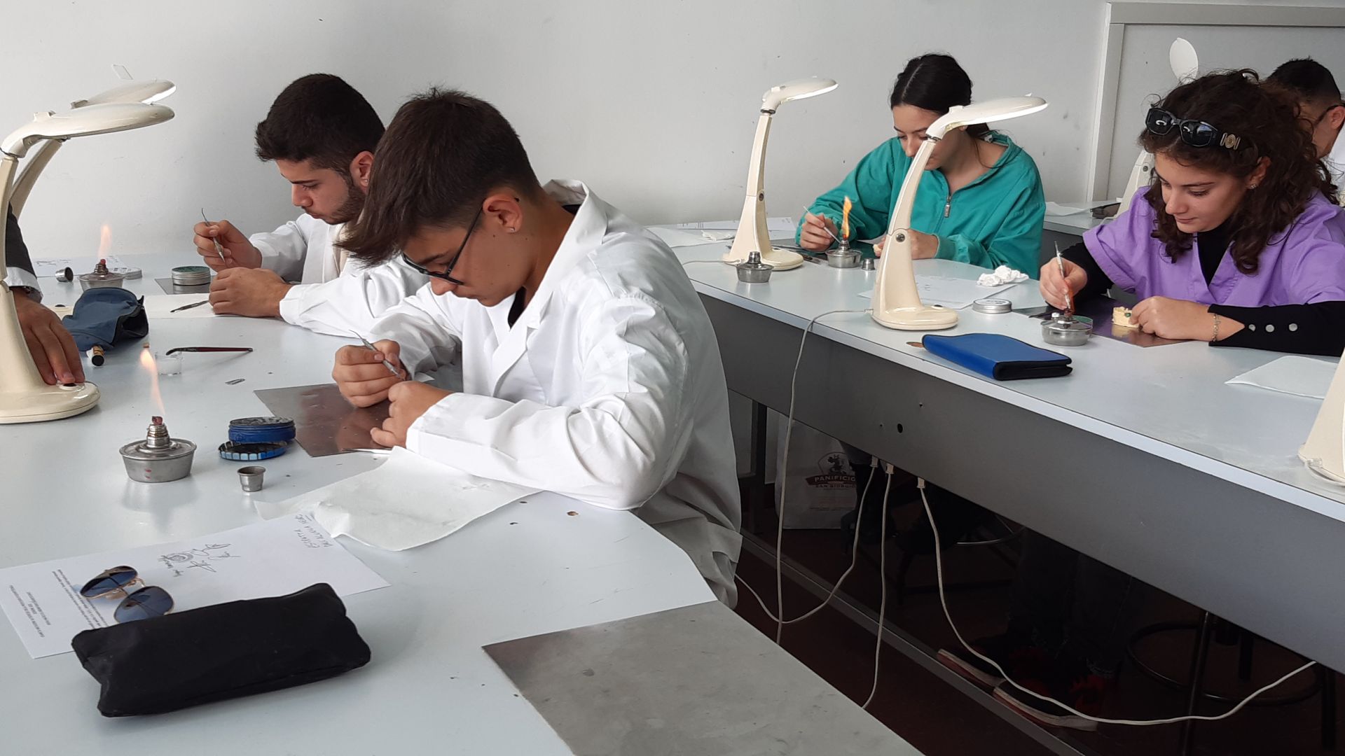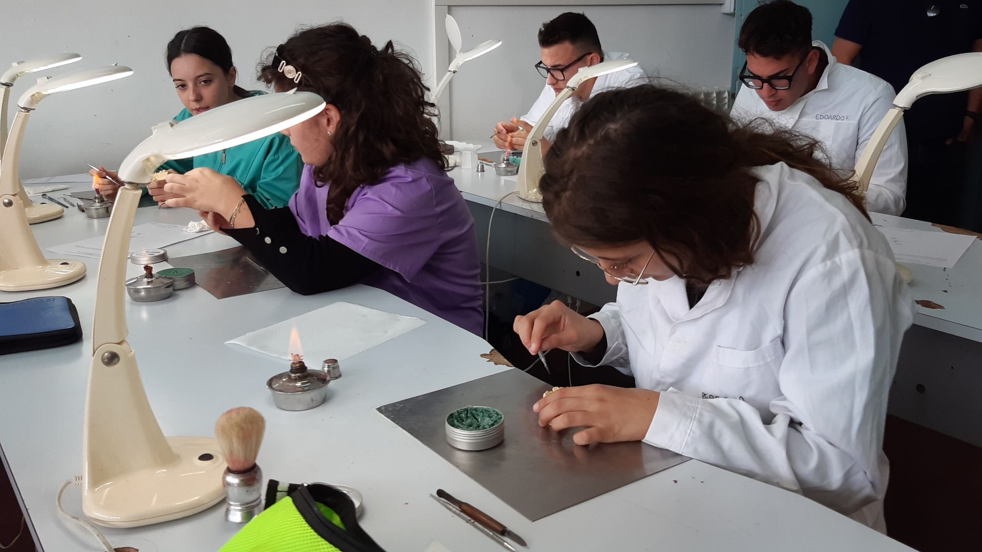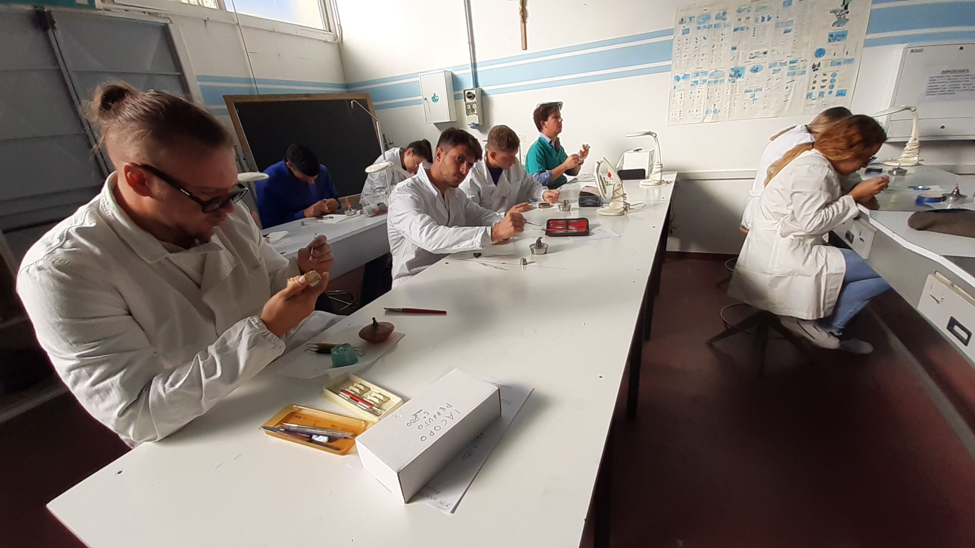 Foto di copertina e gallery: alcuni momenti della prova pratica di “Modellazione odontotecnica” nel laboratorio dell’Istituto.
