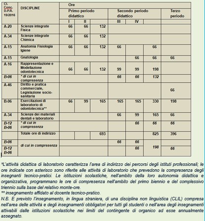 Articolazione: “ARTI AUSILIARIE DELLE PROFESSIONI SANITARIE, ODONTOTECNICO”