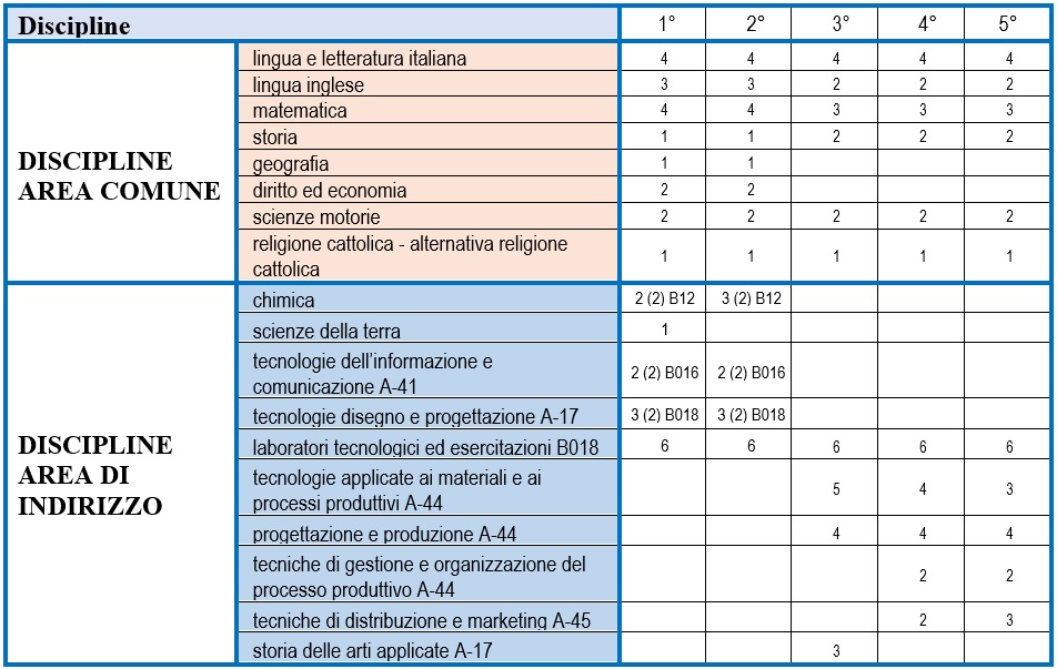Indirizzo: "INDUSTRIA E ARTIGIANATO PER IL MADE IN ITALY" - OPZIONE: PRODUZIONI TESSILI-SARTORIALI (MODA)