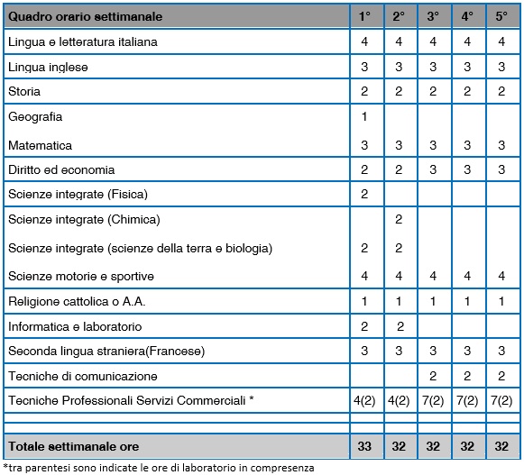 Indirizzo: "SERVIZI COMMERCIALI – SPORTIVO" (SCO/SPORT)